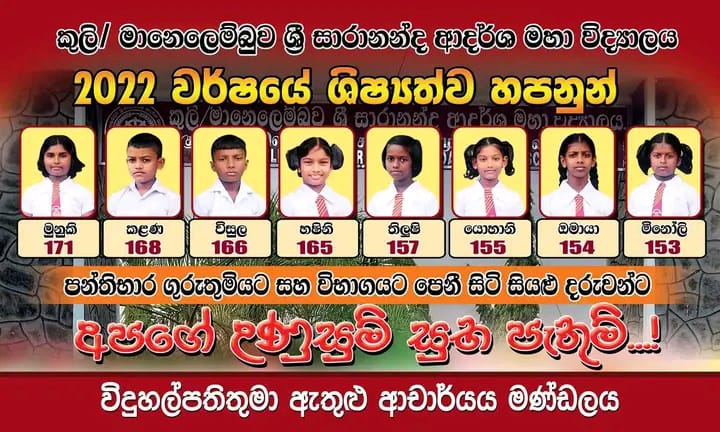 කුලි/මානෙලෙම්බුව ශ්රී සාරානන්ද ආදර්ශ මහා විද්යාලය.මානෙලෙම්බුව . වීරපොකුණ